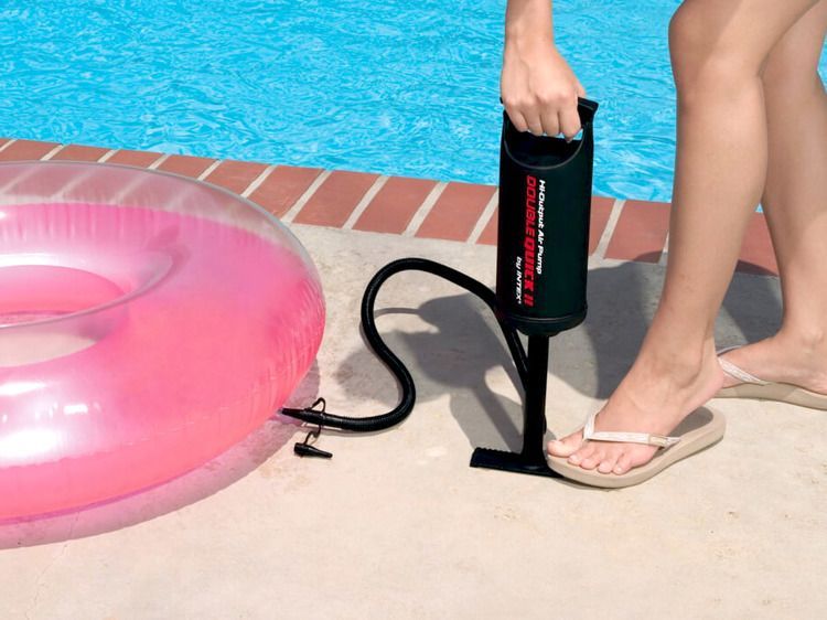 - Особенность ручных насосов Интекс в том, что их конструкция позволяет накачивать изделие как при базипетальном движении, так и при движении вверх. Работа в двух направлениях ускоряет нагнетание воздуха в надувное изделие и делает накачивание быстрым и незатратным. Данный насос позволяет не только накачать, но и сдуть надувную кровать, матрас или детские игрушки.