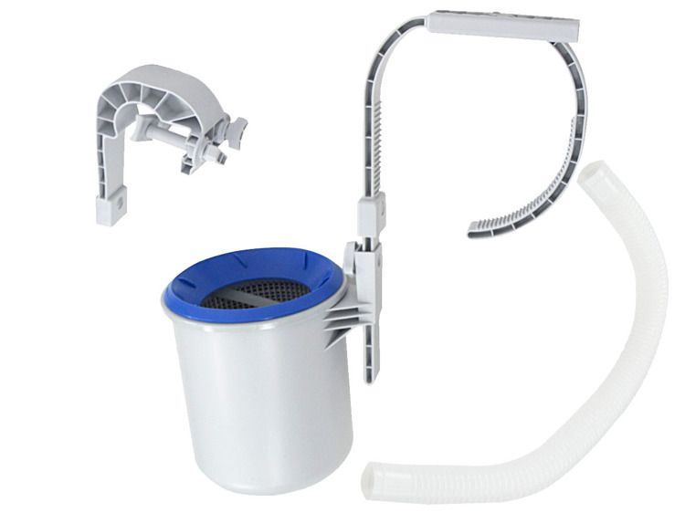- Скиммер 2800 легко крепится к бортику бассейна с помощью съемного крепежа. Он подключается к фильтрующему насосу и начинает работать в автоматическом режиме.
