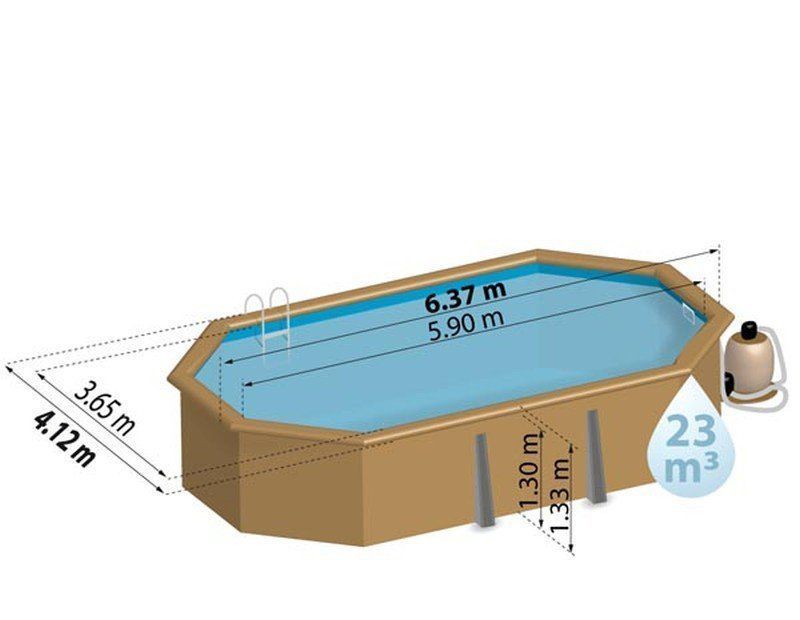 Овальный деревянный бассейн без контрфорсов GRE "Safran" 790089 637х412х133см