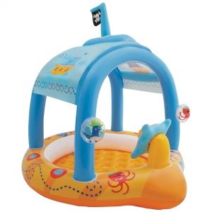 - Оригинальный бассейн в форме корабля, подарит ребенку массу впечатлений и радости. В бассейне имеется встроенный тент, который спасет от палящего солнца в жаркий день. А водичка в бассейне поможет освежиться. В таком бассейне, Ваш малыш почувствует себя моряком дальнего плавания!