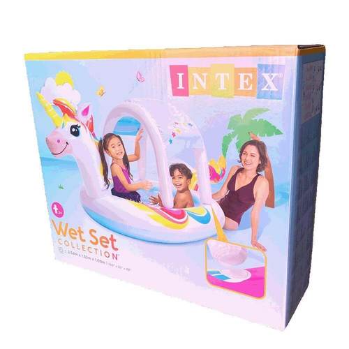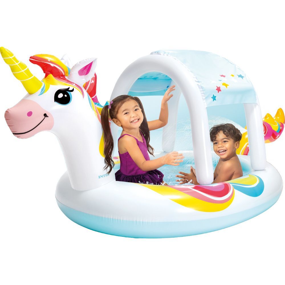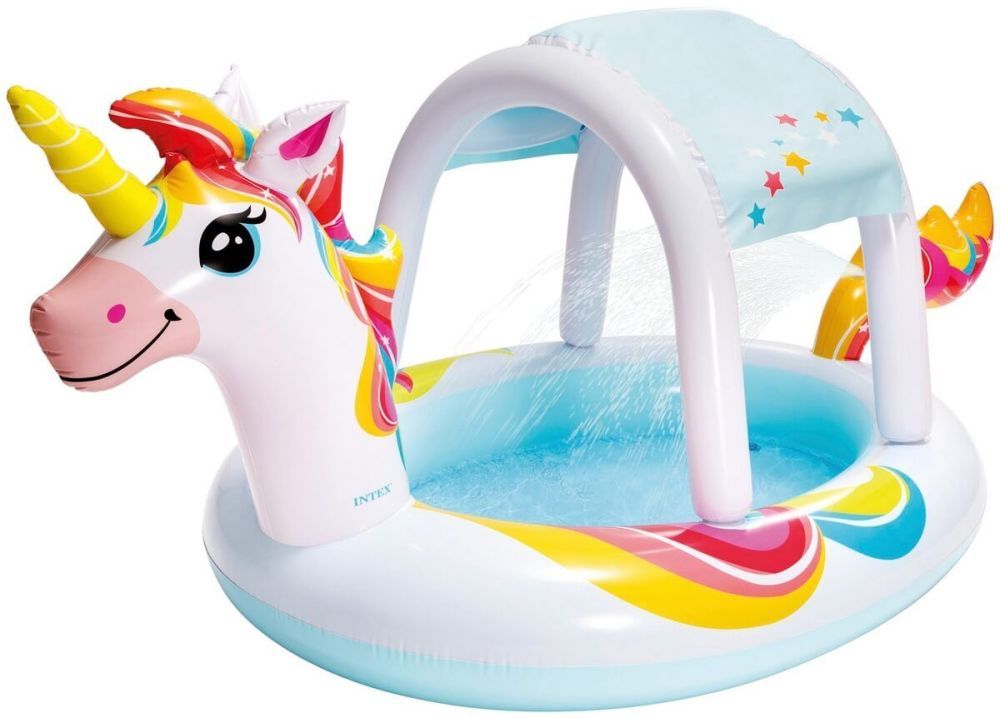 Детский надувной бассейн 122х122см "Единорог" с навесом, 130л, от 2 лет