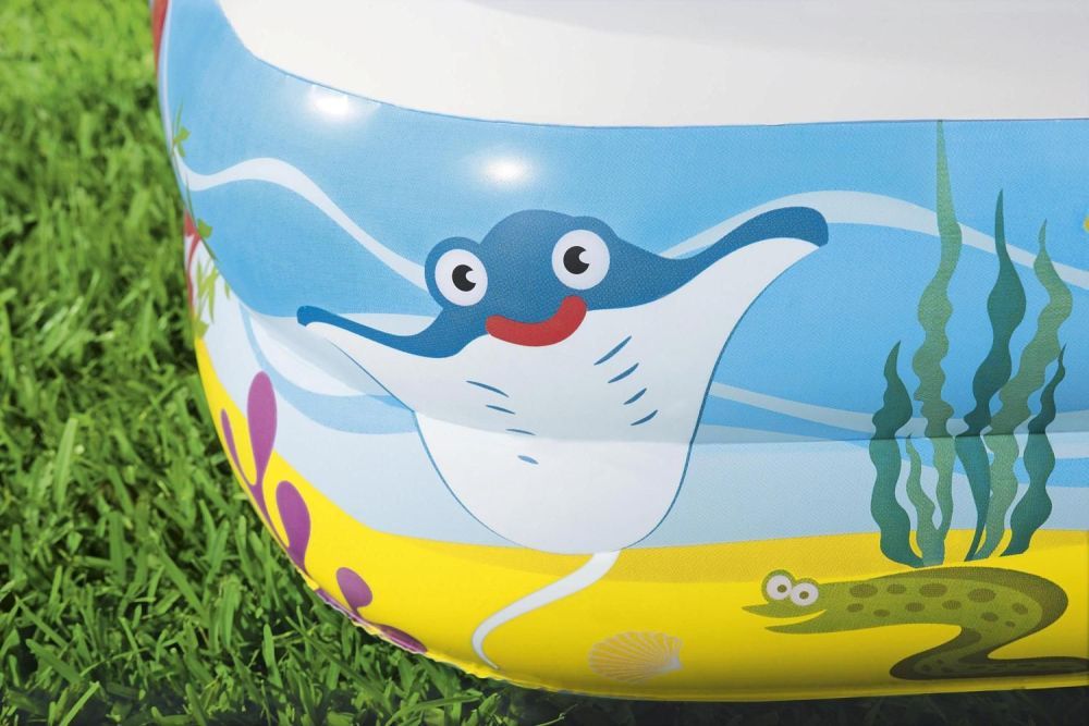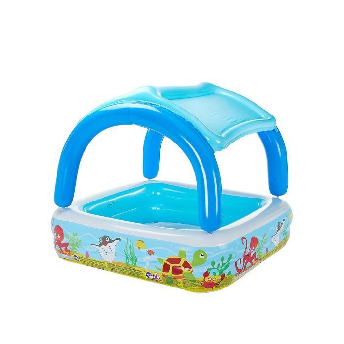 Надувной бассейн Bestway с широким навесом от солнца для маленьких детей от 2 лет. Изготовлен из высококачественного винила, устойчивый, надежный и безопасный. Имеет мягкие стенки с широким бортиком и навес от солнца.