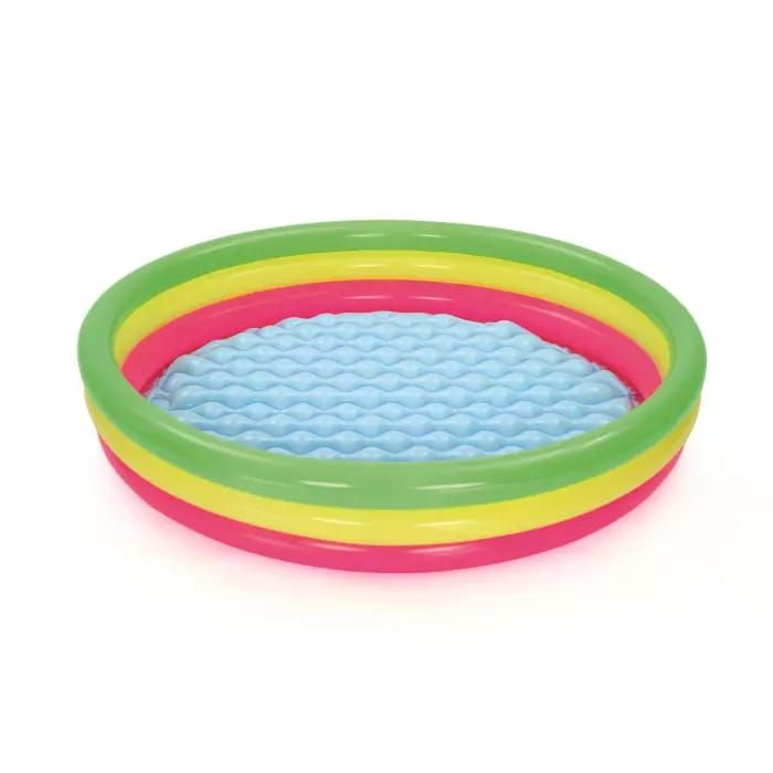 Надувной круглый однотонный бассейн Bestway для детей от 2 лет. Изготовлен из высококачественного винила, прочный, устойчивый, надежный и безопасный. Имеет мягкие стенки с широким бортиком и надувное дно.