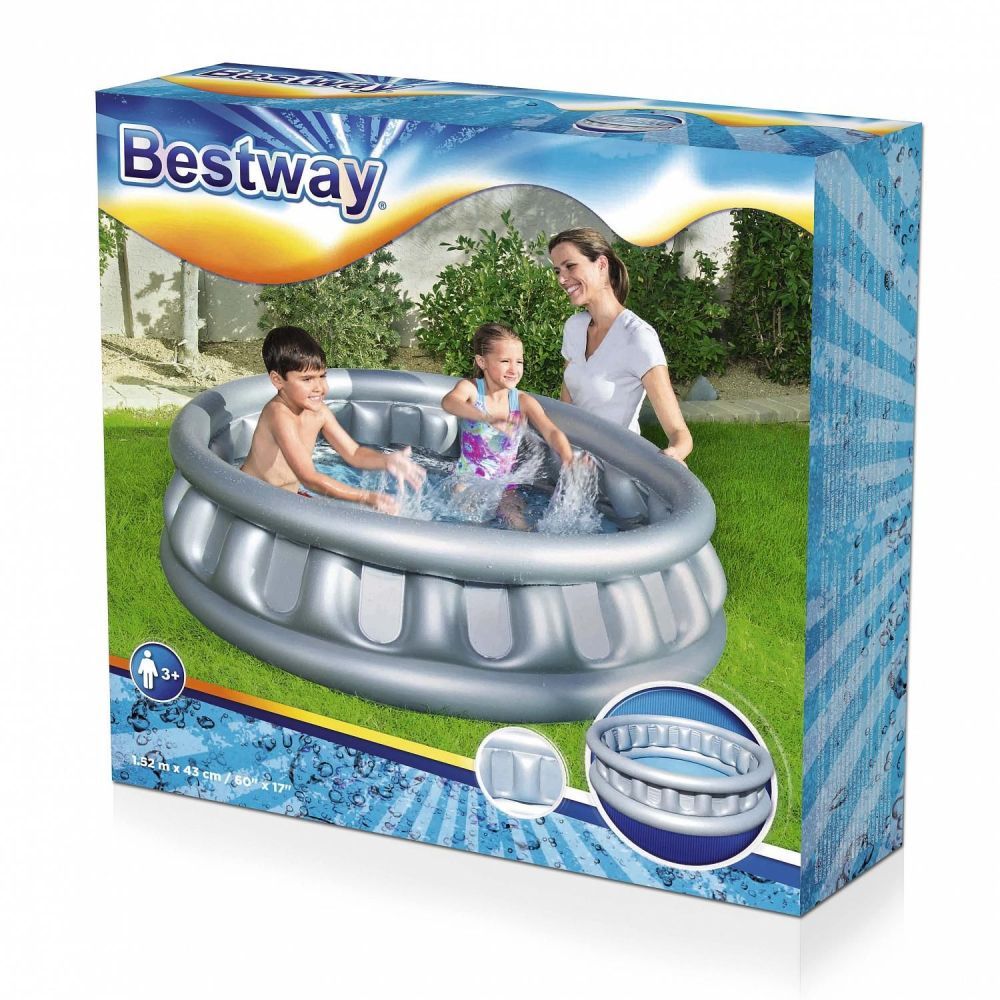 Надувной бассейн Bestway "Космический корабль" для детей от 3 лет. Изготовлен из высококачественного винила, устойчивый, надежный и безопасный. Мягкие стенки с широкими бортиками и жесткое дно из ПВХ-пленки.