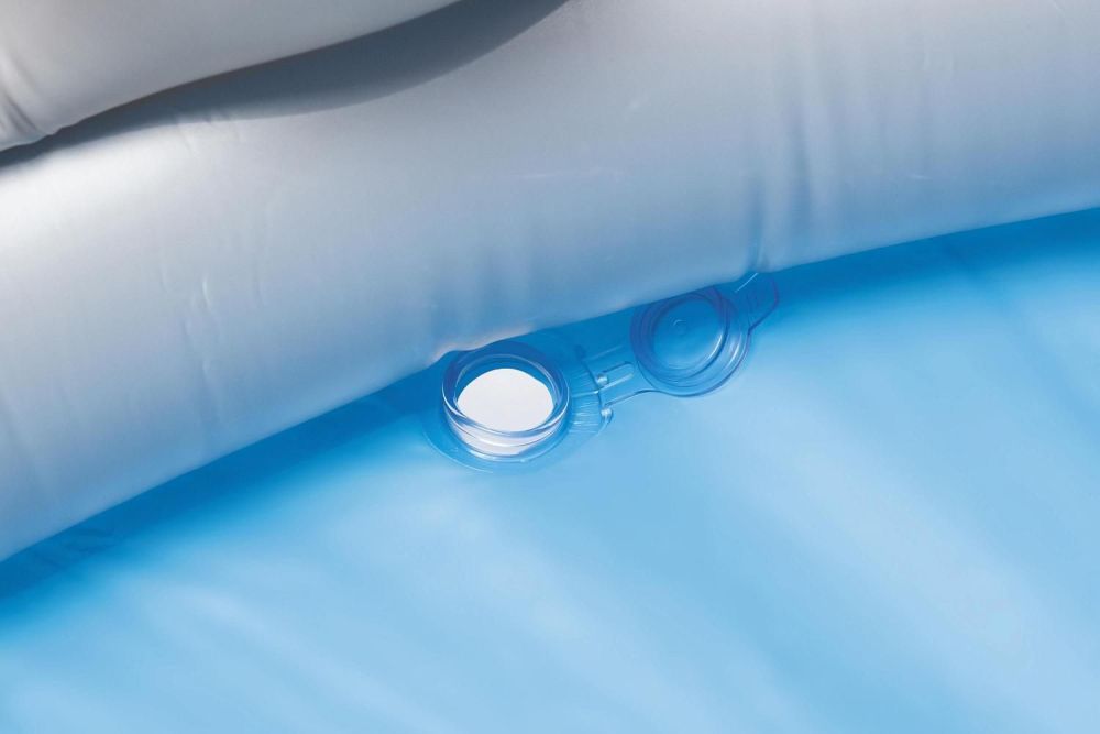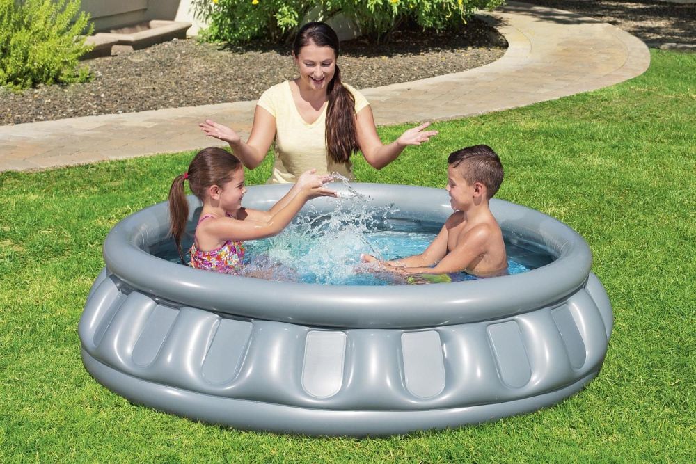 Бассейн быстро надувается и устанавливается на любой ровной поверхности.
