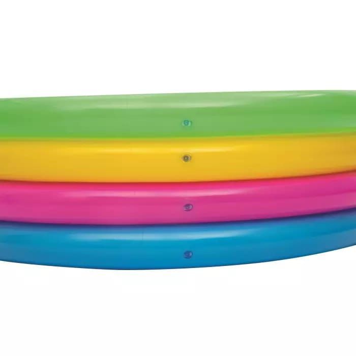 Надувной разноцветный бассейн Bestway для детей от 3 лет. Изготовлен из высококачественного винила, имеет 4 надувные камеры, устойчивый, надежный и безопасный. Мягкие стенки с широкими бортиками и жесткое дно из ПВХ-пленки.
