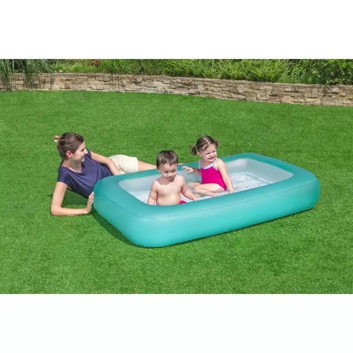Надувной прямоугольный бассейн Bestway для детей от 2 лет. Изготовлен из высококачественного винила, прочный, устойчивый, надежный и безопасный. Имеет мягкие стенки с широким бортиком и мягкое надувное дно.