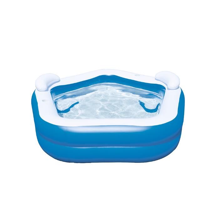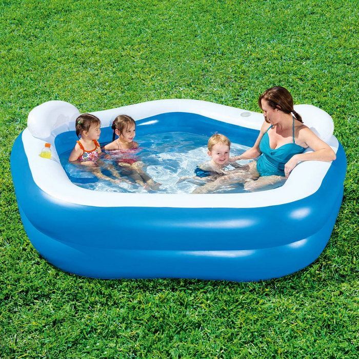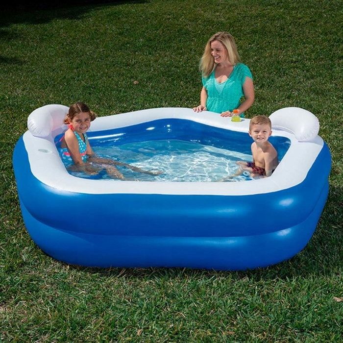 Надувной бассейн с сиденьями и подголовниками - отличное решение для развлечения детей от 6 лет. Квадратный бассейн имеет яркую и красочную расцветку, широкие бортики, надувное дно, мягкие стенки. Материал изготовления – гипоаллергенный, прочный и высококачественный ПВХ винил. Бортики – невысокие. Сиденья и подголовники сделают пребывание в бассейне детей максимально удобным.