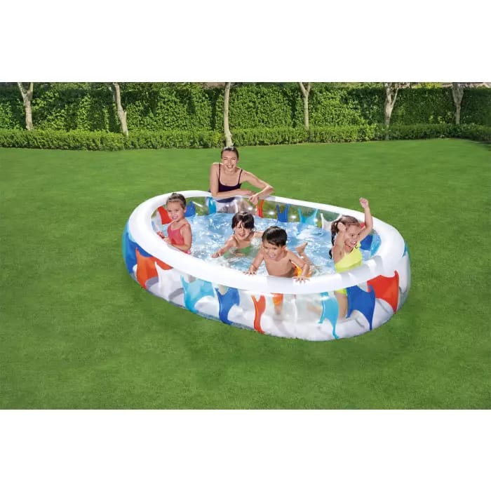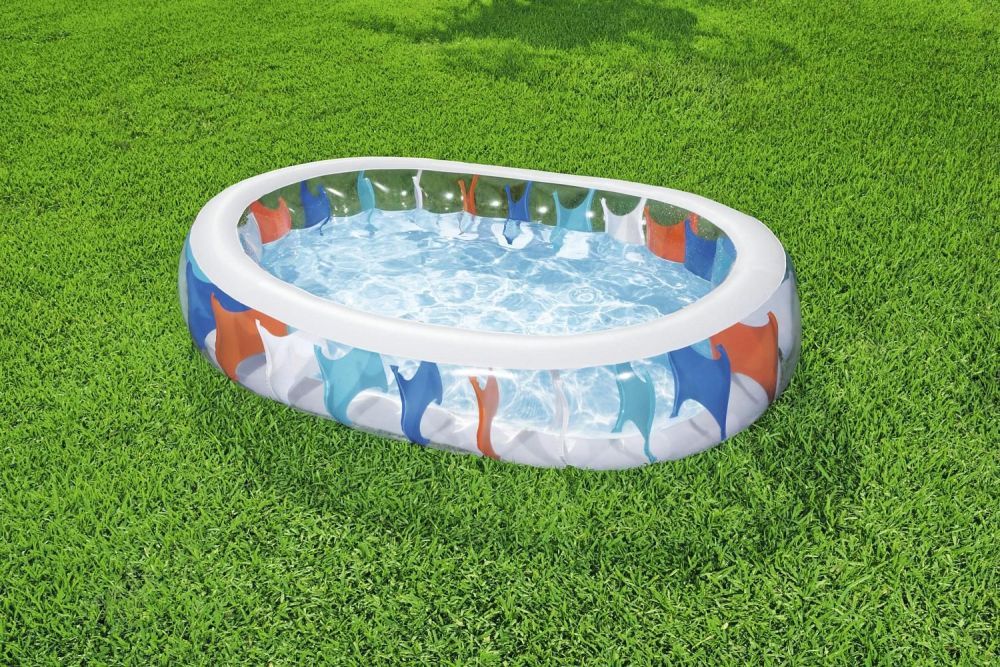 Овальный семейный надувной бассейн Bestway для взрослых детей от 6 лет. Изготовлен из высококачественного винила, устойчивый, надежный и безопасный. Имеет мягкие стенки с широкими бортиками и жесткое дно из ПВХ-пленки.