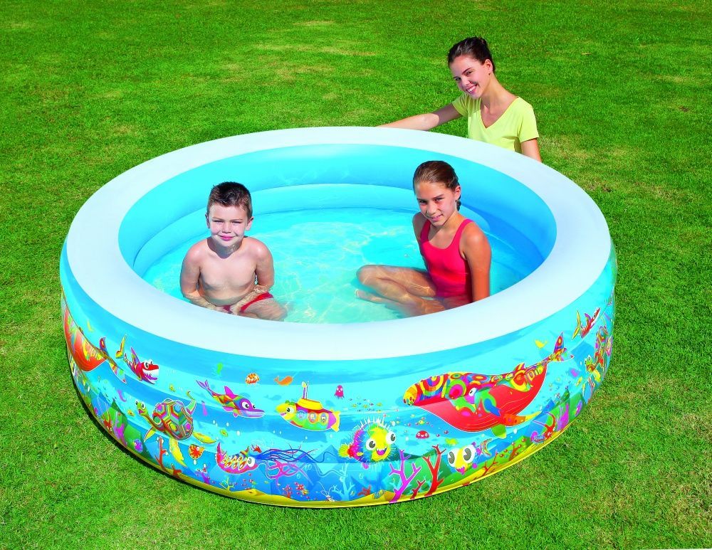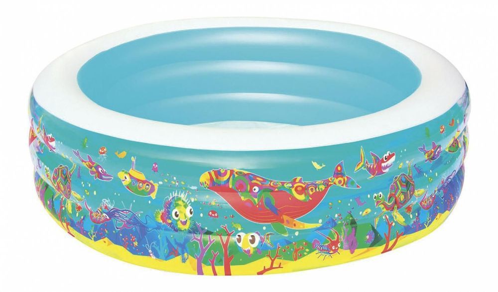 Надувной разноцветный бассейн Bestway для детей от 6 лет. Изготовлен из высококачественного винила, устойчивый, надежный и безопасный. Имеет мягкие стенки с широкими бортиками и жесткое дно из ПВХ-пленки.