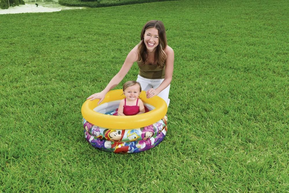 Надувной круглый бассейн Bestway "Baby Pool" Mickey Mouse для детей от 2 лет. Изготовлен из высококачественного винила, устойчивый, надежный и безопасный. Имеет мягкие стенки с широким бортиком, жесткое дно из ПВХ-пленки.