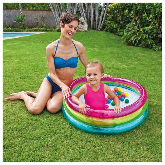 - Красочный надувной бассейн Интекс 57104 это спасение для ребенка в жарким летним днем. Купаясь в таком бассейне, ребенок зарядится положительными эмоциями и просто очень весело проведет время.