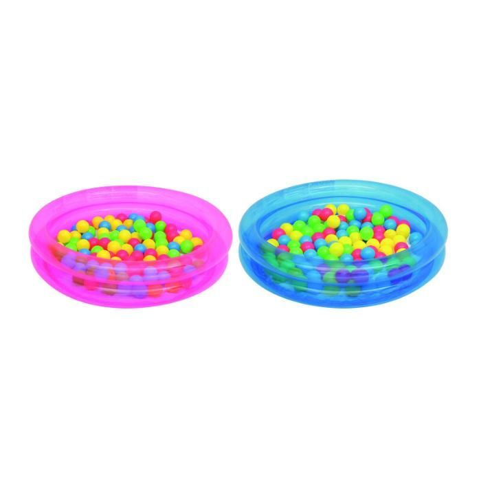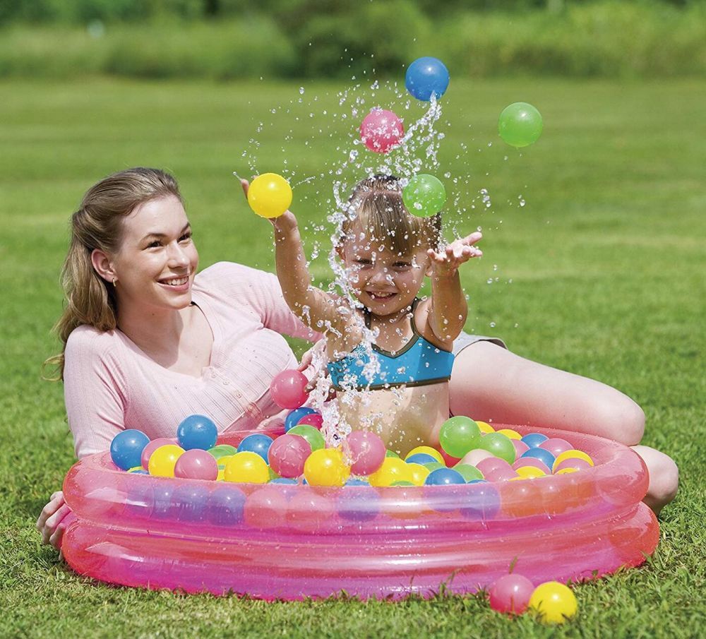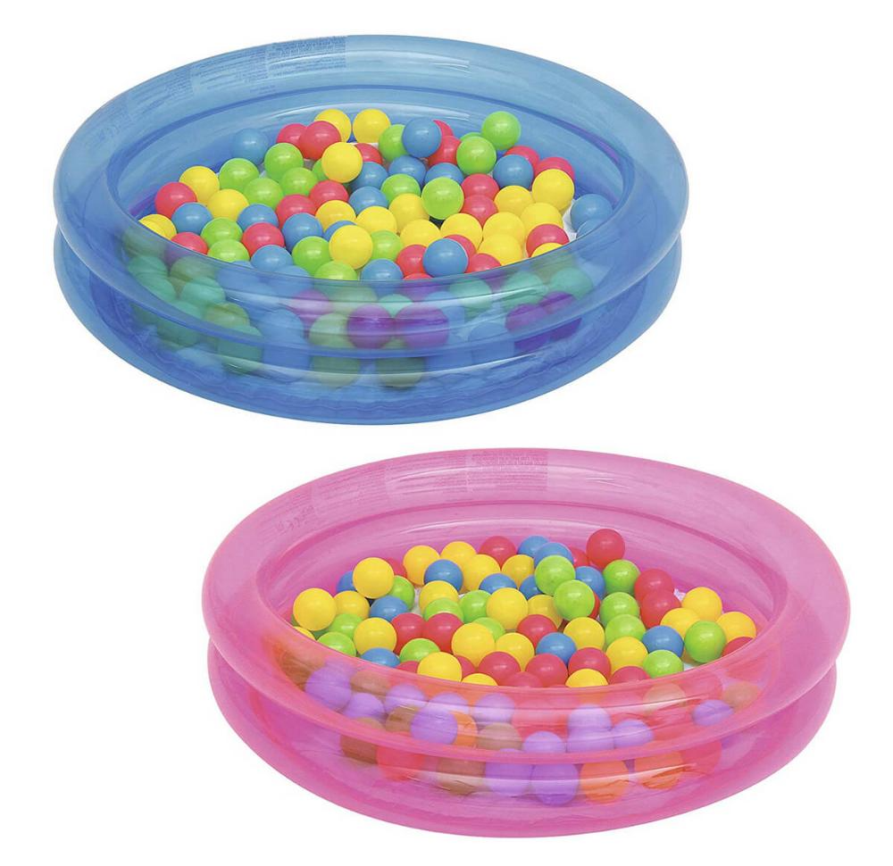 Надувной круглый однотонный бассейн Bestway с 50 разноцветными шариками для детей от 2 лет. Изготовлен из высококачественного винила, прочный, устойчивый, надежный и безопасный. Имеет мягкие стенки с широким бортиком и жесткое дно из ПВХ-пленки.