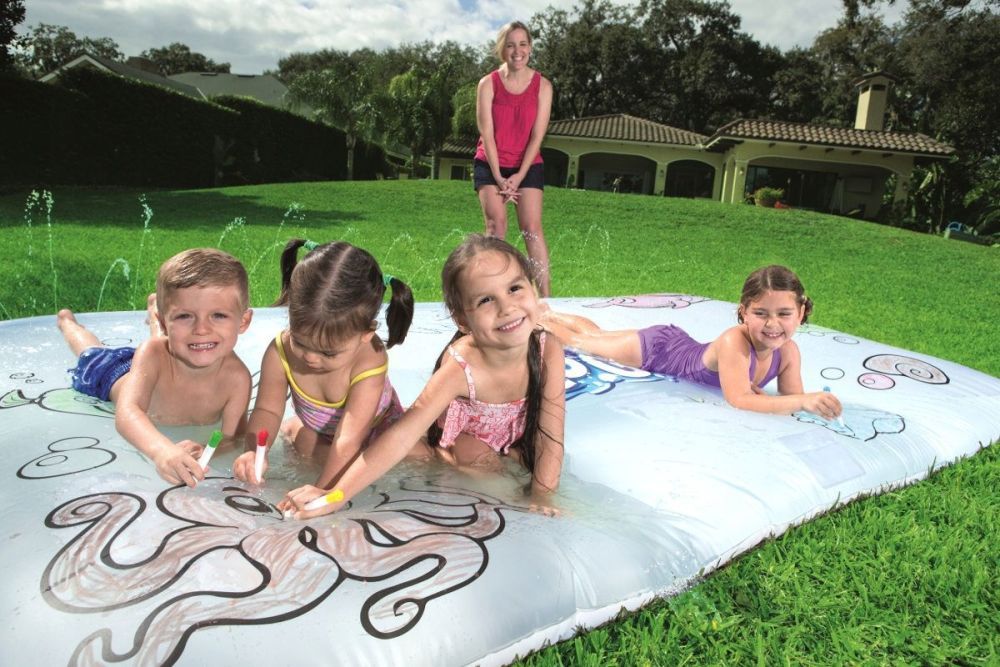 Надувная детская водная игровая площадка предназначена для водных игр детей от 3 лет. Оснащена фонтанчиками, есть влагозащитный карман для маркеров. Обладает яркой и красочной расцветкой, имеет надувное дно, на котором можно рисовать. Изготовлена из высококачественного и прочного ПВХ, гипоаллергенен и безопасен для здоровья, устойчивый и надежный. Площадка Bestway 52223 проста в установке, быстро надувается и размещается на любой ровной поверхности.
