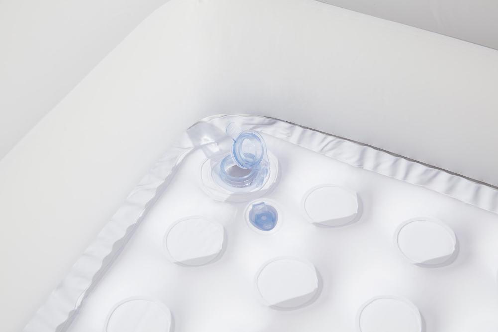 Быстро и легко надувается и размещается на любой ровной поверхности.
