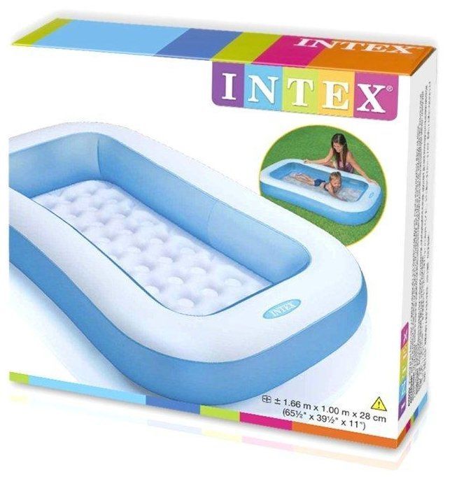 - Надувной бассейн Intex 57403. Данная модельдетского надувного бассейна Интекс 57403 - это прямоуголная легкая конструкция с надувным дном. Бассейн очень удобен для детей самого младшего возраста: он невысокий, мягкий и комфортный.Дети чувствуют себя в этом бассейне, лучше, чем в уютной домашней ванне. Удобно и маме, облокотиться, достать и помочь ребенку в таком бассейне легко, перенести и надуть его- просто! Можете добавить немного надувных игрушек и Ваш ребёнок с удовольствием проведёт в бассейне Intex время.