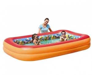 Прямоугольный надувной бассейн Bestway с 3D рисунком "Поиски сокровищ" для детей от 6 лет. Изготовлен из высококачественного винила, устойчивый, надежный и безопасный. Имеет мягкие стенки с широкими бортиками и жесткое дно из ПВХ-пленки. На внутренней поверхности бассейна нанесены увлекательные 3D рисунки. В комплекте с бассейном поставляются 2 пары стереоочков, а также пластмассовая имитация драгоценных камней.