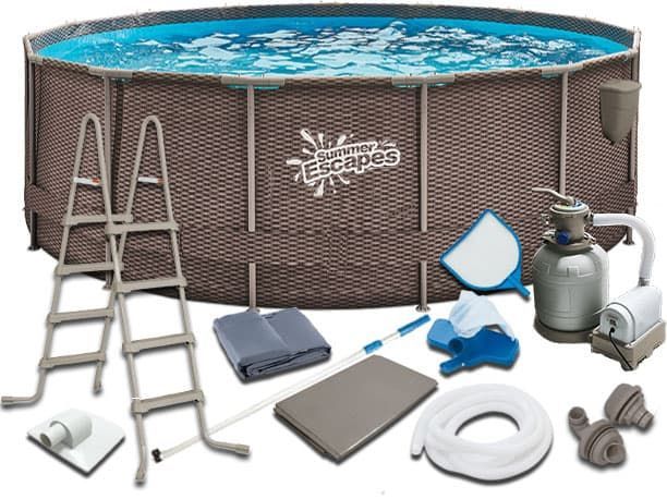 Практичный сборный каркасный бассейн Summer Escapes Р20-1248-S, обладает оригинальной конструкцией, которая позволяет собрать бассейн за 55 минут, без особых физических усилий. Песочный фильтр-насос производительностью 4100л/ч, диаметр шлангов 38мм. Чаша бассейна изготовлена из высококачественного трехслойного ПВХ. Стойки каркаса металлические с покрытием. При сборке бассейна следуйте рекомендациям, указанным в инструкции. Бассейн поставляется полным набором, достаточным для использования, кроме средств для обеззараживания воды. Дополнительно вы можете приобрести аксессуары для каркасного бассейна Summer Escapes Р20-1248-S