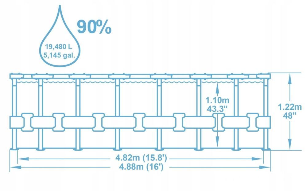 Каркасный бассейн 488х122см, 19480л, фил.-насос 5678 л/ч, тент, лестница, Bestway, 56451 BW