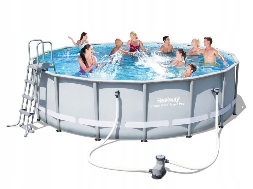 Сборный круглый каркасный бассейн Bestway 56451 488х122см. серии Power Steel (Bestway) с фильтр-насосом, лестницей и тентом.