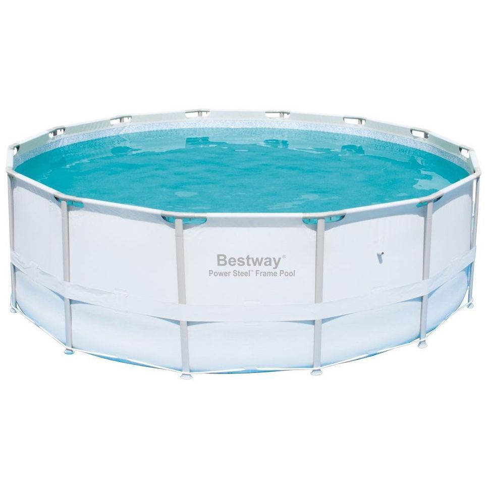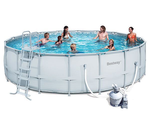 Сборный круглый каркасный бассейн Bestway 56280 549х132см. серии Power Steel (Bestway) с песочным фильтр-насосом, лестницей и тентом.