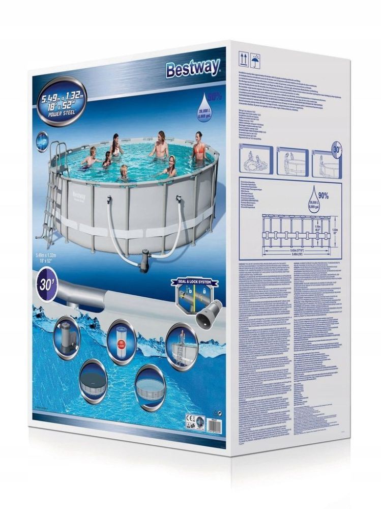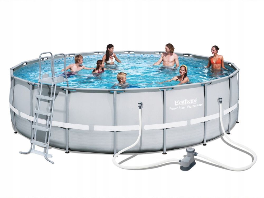 Сборный круглый каркасный бассейн Bestway 56427 549х132см. серии Power Steel (Bestway) с фильтр-насосом, лестницей и тентом.