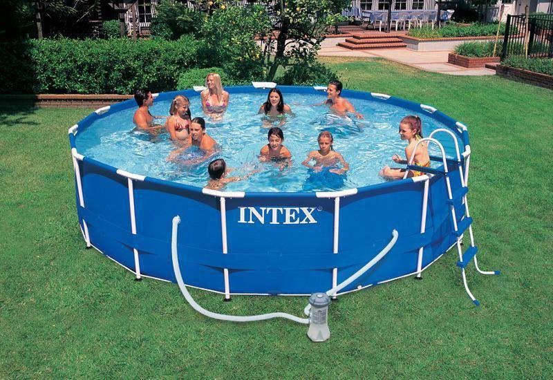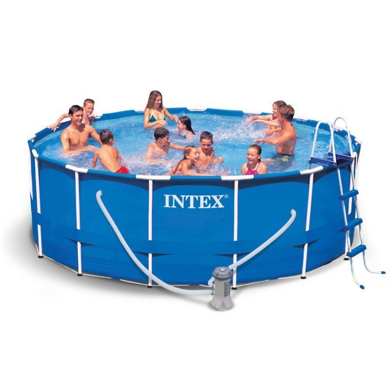 Сборно-разборный круглый каркасный бассейн Intex 28234 457х107см. серии Metal Frame с фильтр-насосом, лестницей, подстилкой и тентом.