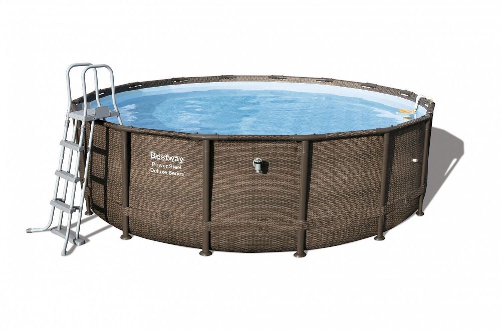 Каркасный бассейн Power Steel 488х122см "Ротанг" 19480л, подвесной фил.-насос, лестница, тент, Bestway, 56666 BW