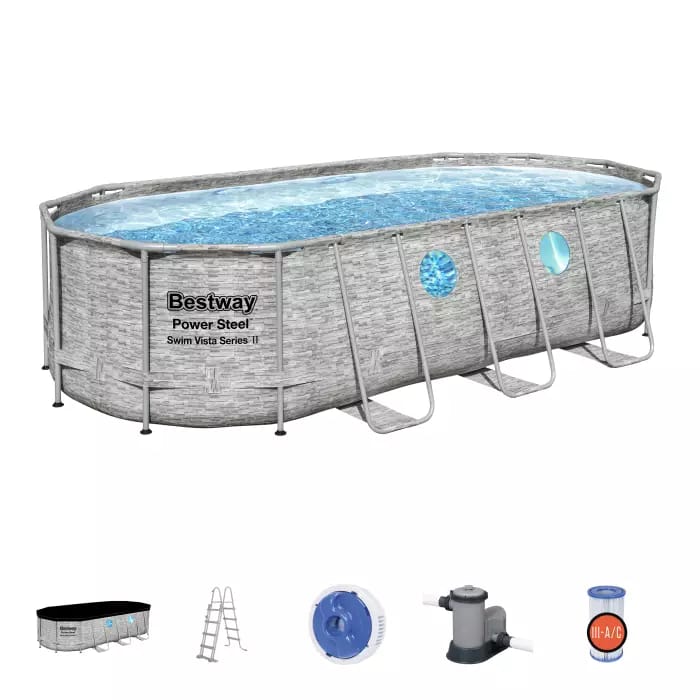 Каркасный бассейн Bestway 56716 отличается высокой прочностью и устойчивостью, а также оригинальным дизайном чаши в виде имитации каменной стены. Чаша выполнена из высококачественного трехслойного ПВХ: два слоя плотного винила и один - полиэстер для особой прочности. Каркас металлический нержавеющий оцинкованный.
