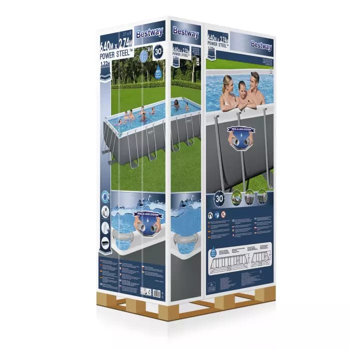Каркасный бассейн Power Steel 640х274х132см, 19281л, песч.фил.-нас. 5678л/ч, лестн., тент, попл.-доз, Bestway, 5612B BW