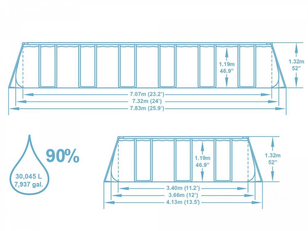 Размер: 732 x 366 x 132 смОбъем воды (90%): 30045 литров