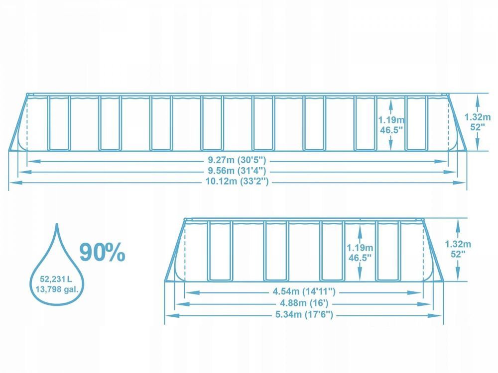 • Объем при 90% заполнении бассейна: 52 231 литр