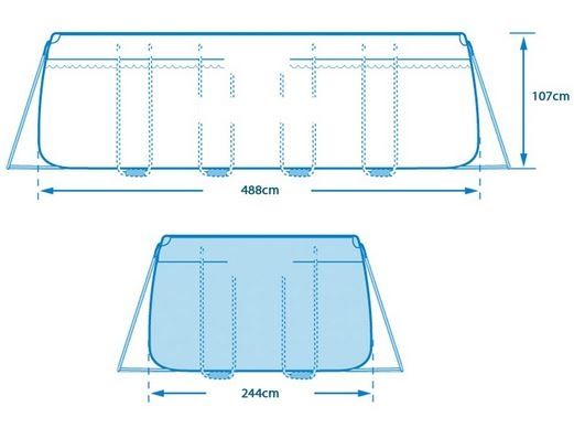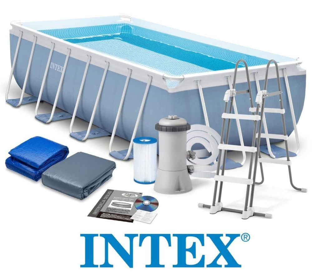 Сборно-разборный прямоугольный каркасный бассейн Intex 26778 488х244х107см. серии Prism Frame с фильтр-насосом, лестницей, подстилкой и тентом.