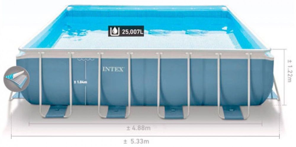Каркасный бассейн Prism Frame 488х488х122см, 25007л, фил.-насос 5678л\ч, лестница, тент, подстилка, Intex, 26766