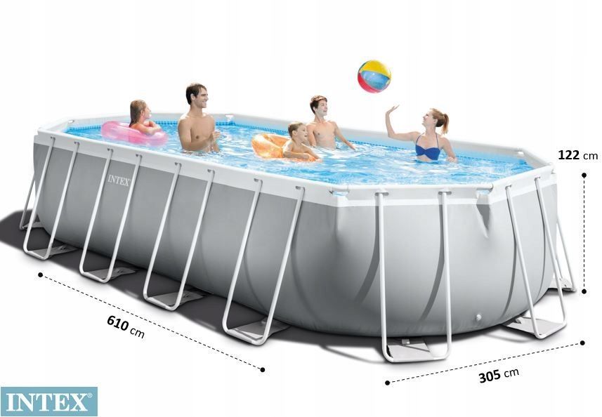 Каркасный бассейн Prism Frame 610х305x122см "Oval" 18202л, фил.-насос 5678л\ч, лестн., тент, подст., Intex, 26798