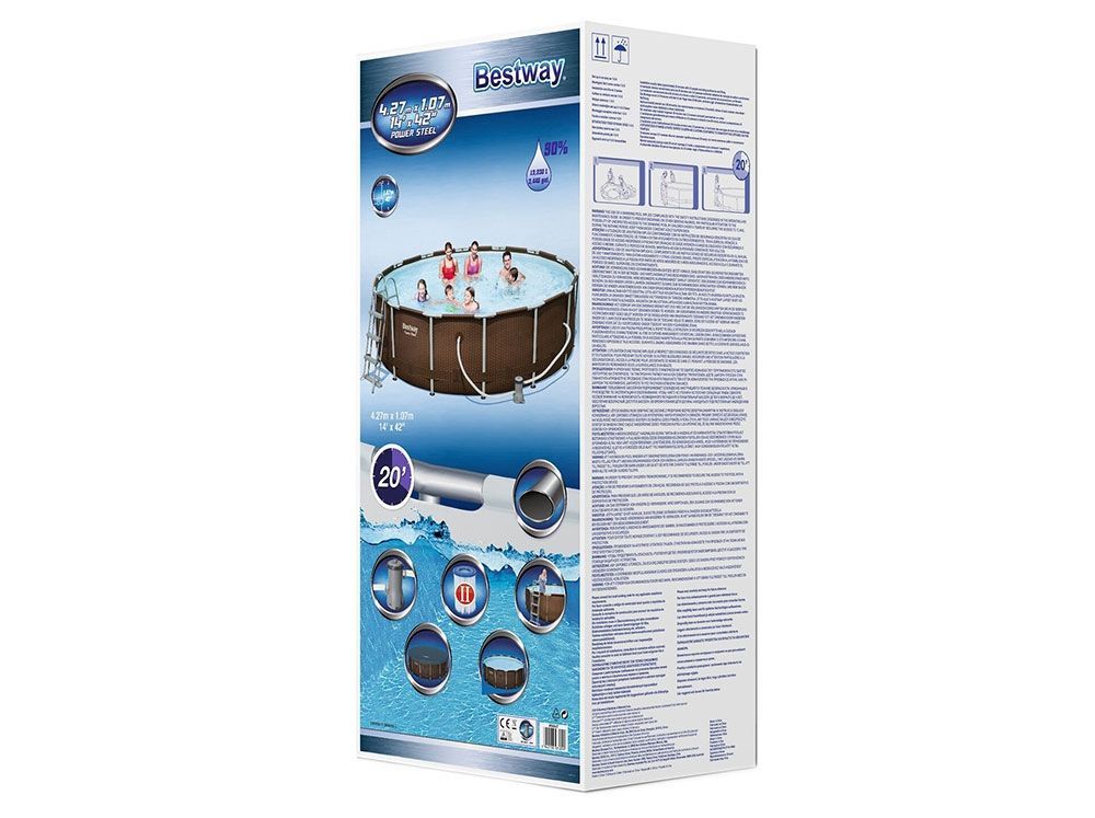 Каркасный бассейн Bestway 56647 отличается высокой прочностью и устойчивостью, а также оригинальным дизайном чаши в виде ротангового покрытия. Чаша выполнена из высококачественного трехслойного ПВХ: два слоя плотного винила и один - полиэстер для особой прочности. Каркас металлический нержавеющий оцинкованный.