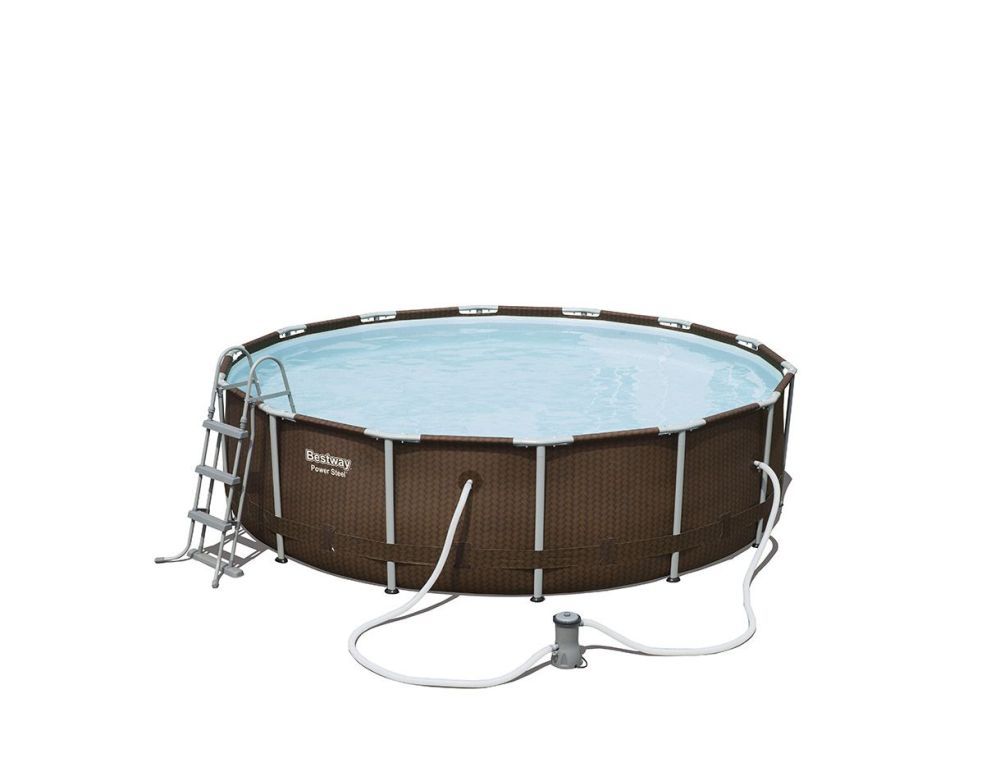 Каркасный бассейн "Ротанг", 427х107 см, 15232л, фильтр-насос 3028л/ч, тент, лестница, Bestway, 56647 BW