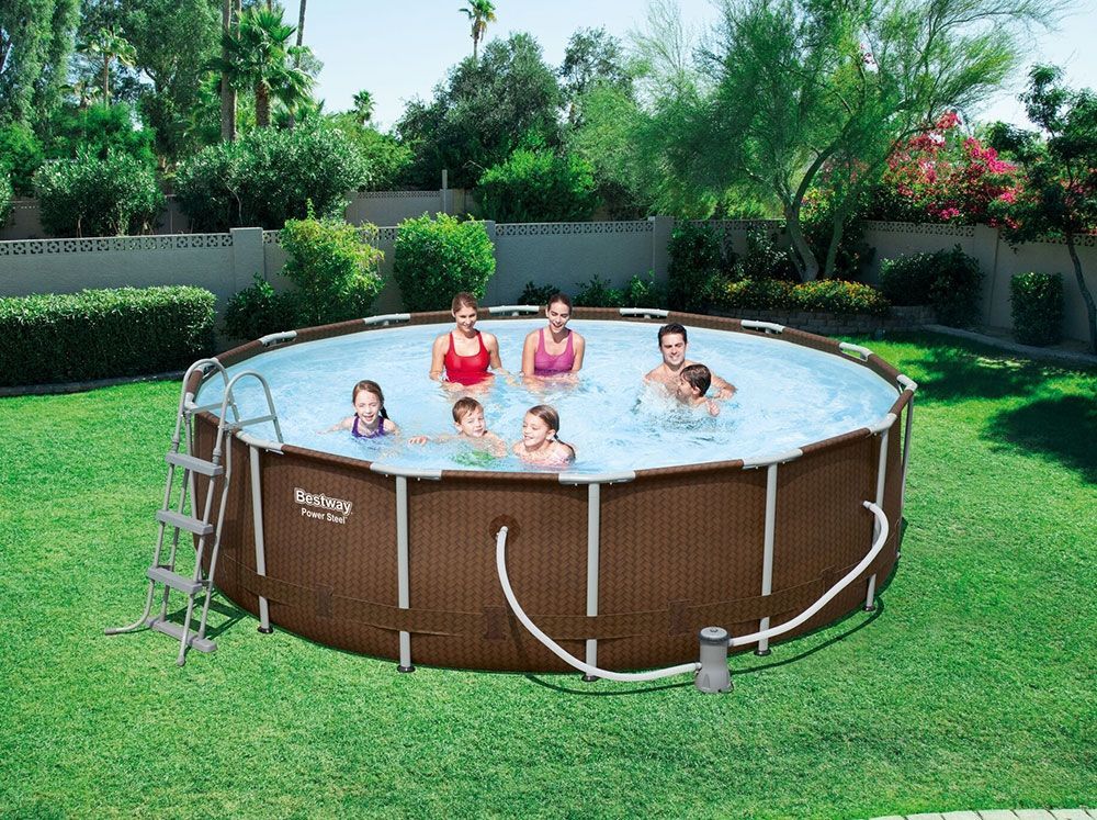 Сборный круглый каркасный бассейн Bestway 56647 427х107см. серии Power Steel (Bestway) с фильтр-насосом, лестницей и тентом.
