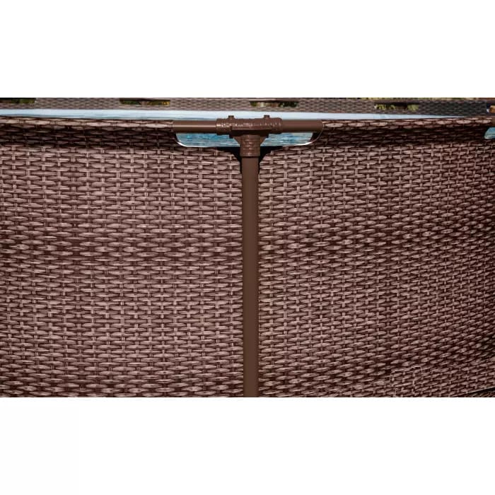 Каркасный бассейн Bestway 56709 отличается высокой прочностью и устойчивостью. Чаша выполнена из высококачественного трехслойного ПВХ: два слоя плотного винила и между ними сетка из полиэстера для особой прочности. Цвет чаши бассейна снаружи имитирует ротанг, внутренняя поверхность имеет расцветку под мозаику. Каркас металлический, покрытый предотвращающим появление коррозии слоем пластика.