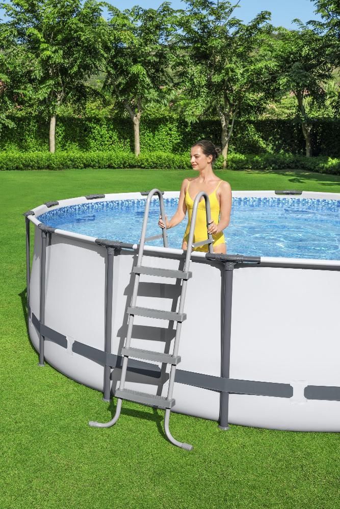 Каркасный бассейн Bestway 56462/56113 отличается высокой прочностью и устойчивостью. Чаша выполнена из высококачественного трехслойного ПВХ: два слоя плотного винила и один - полиэстер для особой прочности. Каркас металлический нержавеющий оцинкованный.