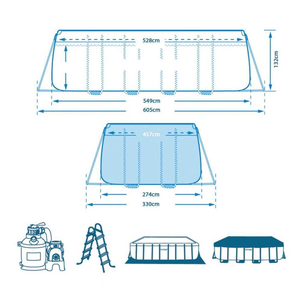 Сборно-разборный прямоугольный каркасный бассейн Intex 28352 549х274х132см. серии Ultra Frame с песочным фильтр-насосом, лестницей, подстилкой и тентом.