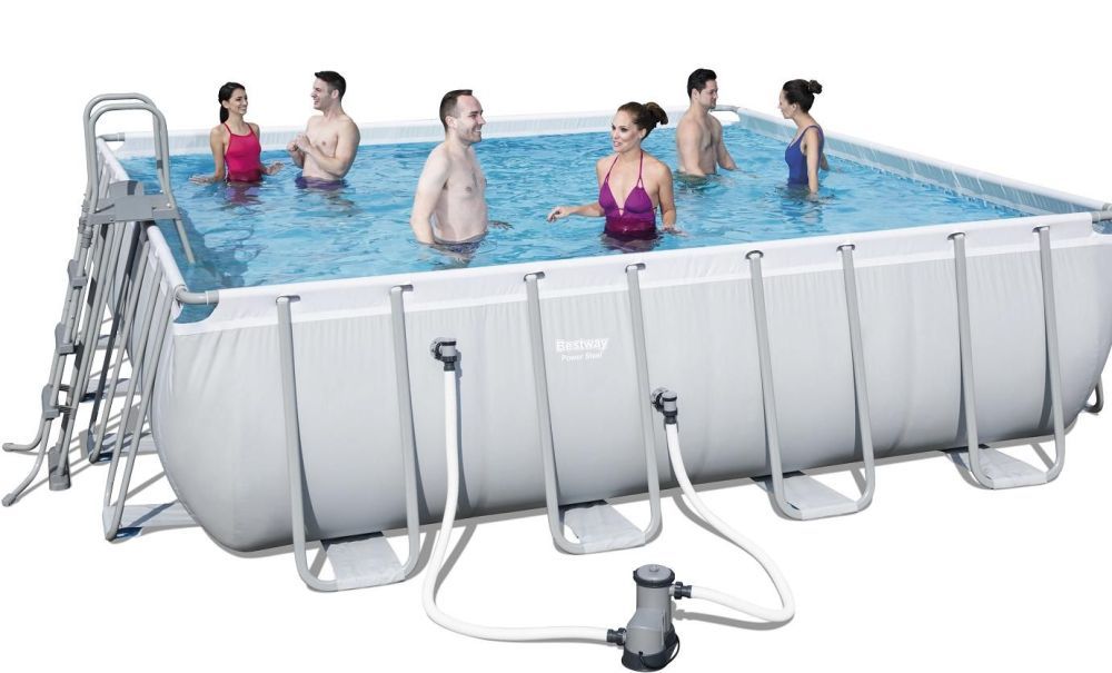 Сборный квадратный каркасный бассейн Bestway 56626 488х488х122см. серии Power Steel (Bestway) с фильтр-насосом, лестницей и тентом.