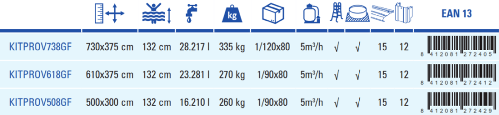 Морозоустойчивый овальный бассейн GRE KITPROV738GF 730х375х132 см. Granada изготовлен из сверхпрочного материала (прессованный гофрированный стальной лист) с внешней графитовой отделкой и с внутренней поверхностью из виниловой пленки ПВХ (лайнер голубого цвета). Бассейн устойчивый и прочный - на борт бассейна можно не только облокотиться, но и спокойно сесть, а также закрепить любое оборудование и аксессуары. Виниловая внутренняя чаша бассейна обладает противоскользящим эффектом, надежная и безопасная, устойчивая к ультрафиолету, перепадам температур, истиранию. Но при необходимости пленку лайнер всегда можно заменить. Простая и легкая установка бассейна Granada выгодно выделяет его на фоне обычных бассейнов. Для подготовки площадки не требуется серьезных затрат, достаточно залить плиту толщиной 15-20 см., также допускается частичное или полное заглубление конструкции. Благодаря уникальным конструкционным материалам, бассейн может оставаться на открытом воздухе круглогодично, не боится ни морозов, ни палящего солнца.Испанский концерн GRE известен на международном рынке уже более 50-и лет, вся продукция проходит испытания и соответствует строгим европейским нормам качества.На все бассейны производитель дает 5-и летнюю гарантию, а срок службы не менее 10 лет! В отличии от своих китайский конкурентов, GRE предоставляет российскому рынку высококачественную продукцию премиум уровня по приемлемым ценам и наилучшее соотношение в срок службы/качество/цена. Если вам необходим бассейн, который после 3-4 лет использования будет оставаться таким же новым и надежным, как в день покупки, то GRE ваш выбор.