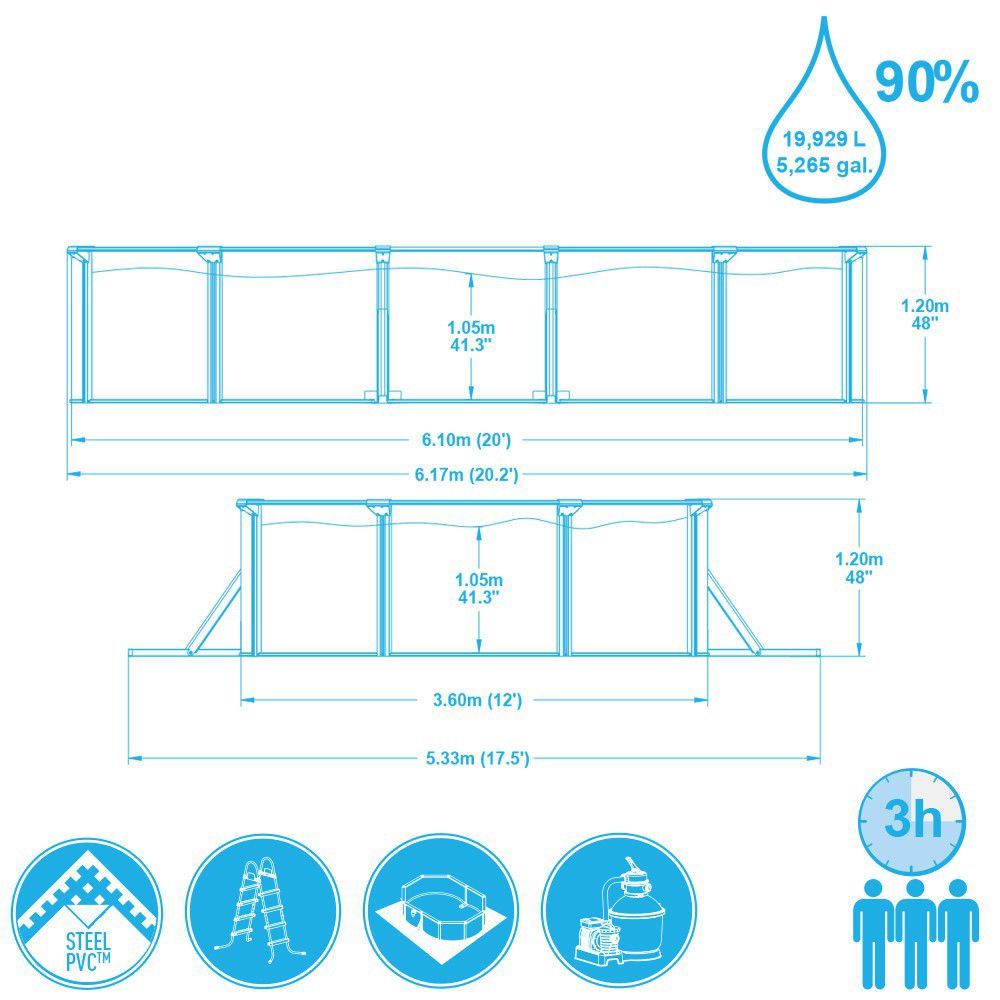 Стальной бассейн Hydrium 610х360х120см, 19929л, песч.фил.-нас 5678л/ч, лестн, тент, подст, попл.-доз
