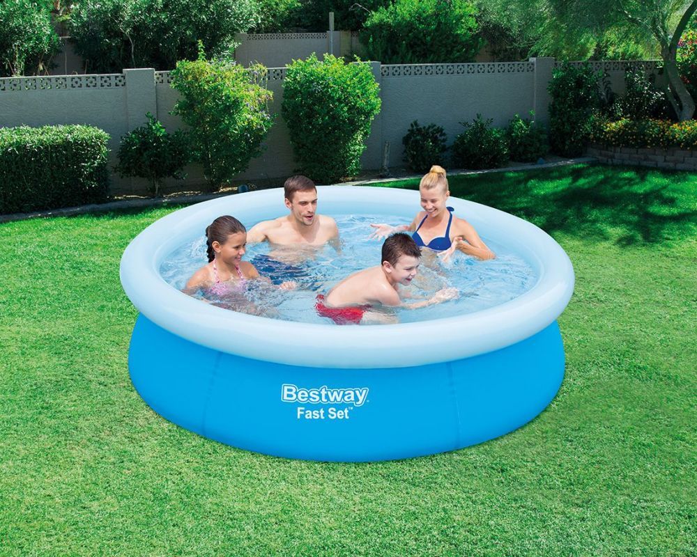 Надувной бассейн Bestway 57252 Fast Set отличается простотой и легкостью. Стенки бассейна, выполнены из армированного ПВХ, внешний слой - полиэстер для особой прочности. Поддержка бортов осуществляется при помощи надувного кольца, которое поднимается по мере наполнения бассейна и расправляет его стенки.