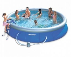 Надувной бассейн Bestway 57280/57124 Fast Set отличается простотой и легкостью. Стенки бассейна, выполнены из армированного ПВХ, внешний слой - полиэстер для особой прочности. Поддержка бортов осуществляется при помощи надувного кольца, которое поднимается по мере наполнения бассейна и расправляет его стенки.