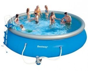 Надувной бассейн Bestway 57291/57212 Fast Set отличается простотой и легкостью. Стенки бассейна, выполнены из армированного ПВХ, внешний слой - полиэстер для особой прочности. Поддержка бортов осуществляется при помощи надувного кольца, которое поднимается по мере наполнения бассейна и расправляет его стенки.