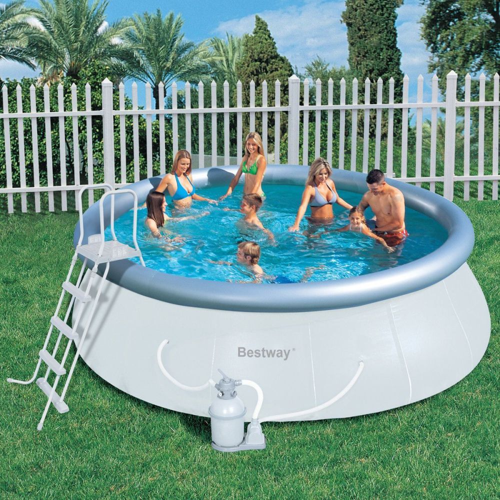 Надувной круглый бассейн Bestway 57242 457х122см. с фильтр-насосом изготавливается по запатентованной технологии, которая обеспечивает ещё большую долговечность и безопасность бассейна. Стенки бассейна выполнены из высококачественного трехслойного ПВХ: два слоя винила и внешний слой высокопрочный полиэстер. Конструкция бассейна поддерживается надувным кольцом, которое поднимается и формирует чашу бассейна по мере его заполнения водой.