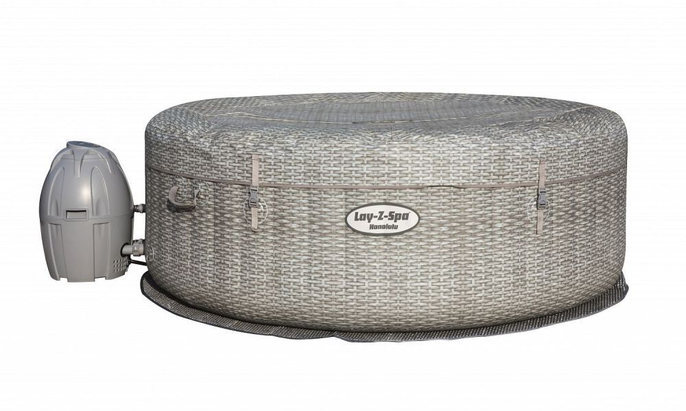 СПА-бассейн Honolulu AirJet имеет круглую форму, красивый цвет и принт (ротанговое плетение). Предназначен для 4-6 человек. Стенки удобные, с внутренними ребрами жесткости, поэтому на них можно смело опираться. Быстро надувается при помощи электрического насоса. Преимущества модели 54174 BW: аэромассаж, управление осуществляется с панели, есть дисплей, есть функция подогрева воды.