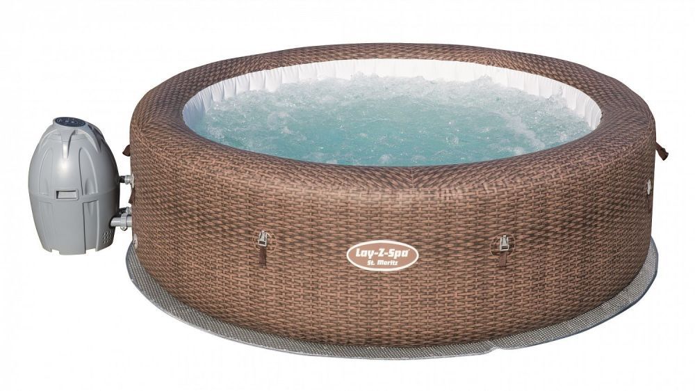 СПА-бассейн St.Moritz AirJet круглый, стильный, приятной коричневой расцветки с рисунком, имитирующим плетение из ротанга. Модель 54175 BW рассчитана на большие компании – от 5 до 7 человек. Бассейн изготовлен из высокопрочного трехслойного материала Tritech. Быстро и легко устанавливается. Нагревает воду до 40 градусов С, есть аэромассаж. Удобный дисплей для программирования функций, оснащен таймером.